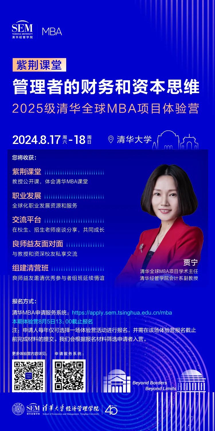 清华MBA其他项目的体验营活动时间和安排,敬请持续关注清华MBA官网和官微的后续通知。