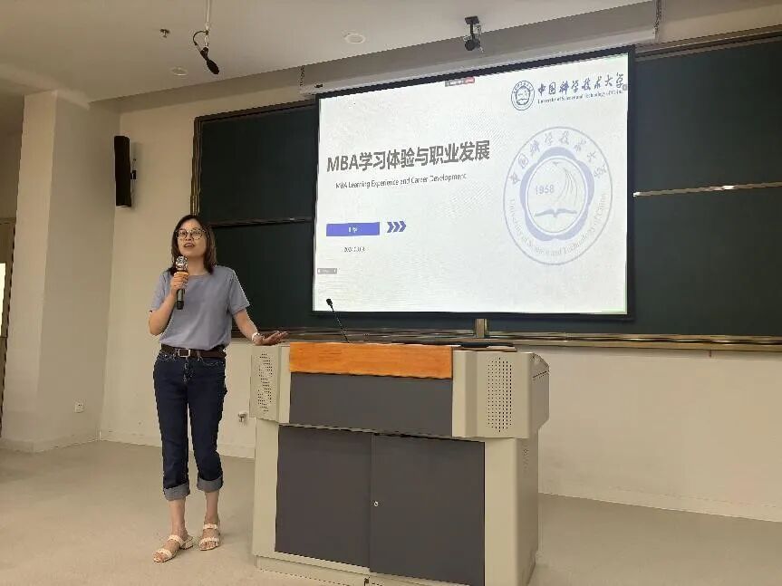 随后,优秀校友叶华和 23 级学员唐一波做了科大 MBA 学习经验分享。从“为什么读MBA?”“为什么选择中科大”“如何规划职业?”到各门课程学习,各项实践活动,给到哪些提升,包括认知,知识与实践,资源等一一做了分享。两位同学发言情真意切,充满了青春活力与正能量,赢得了阵阵掌声,呈现出科大 MBA 学子的风采与魅力。
