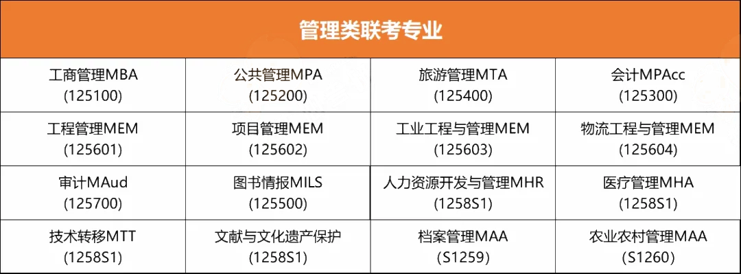 目前参加管理类联考的专业有这些?