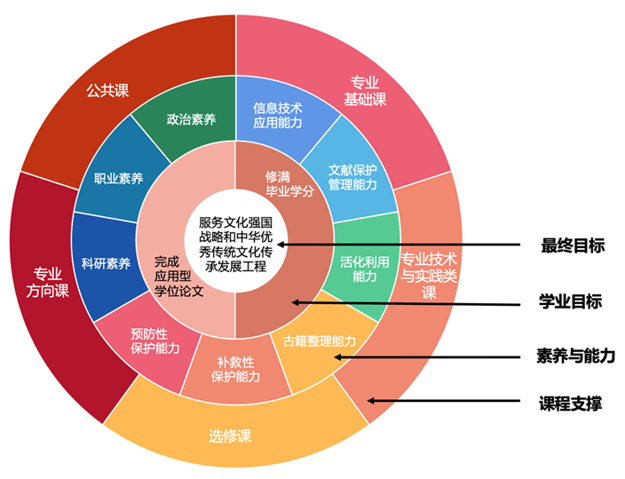 培养具有优秀职业素养,能够综合运用保护与修复、整理与活化、数字化保护、保护管理和治理等知识和技能解决文献与文化遗产保护工作中的实际问题,胜任文献与文化遗产保护行业的实际工作,满足文化强国建设、中华优秀传统文化传承发展战略需求的高层次、应用型、复合型专门人才。