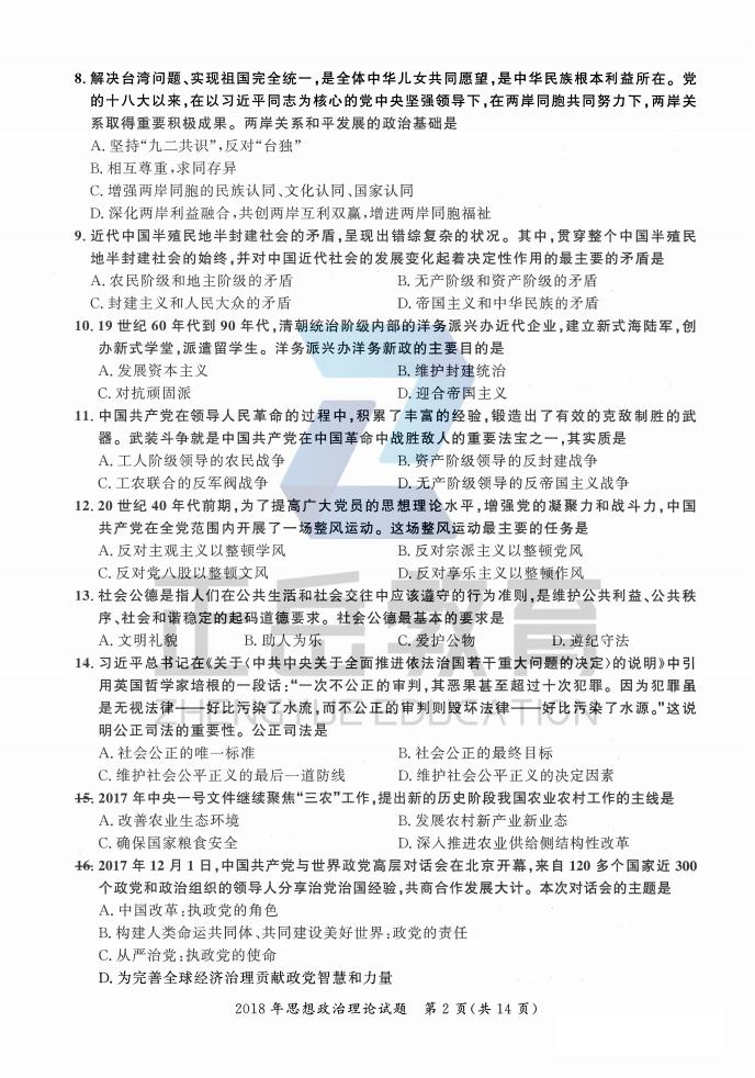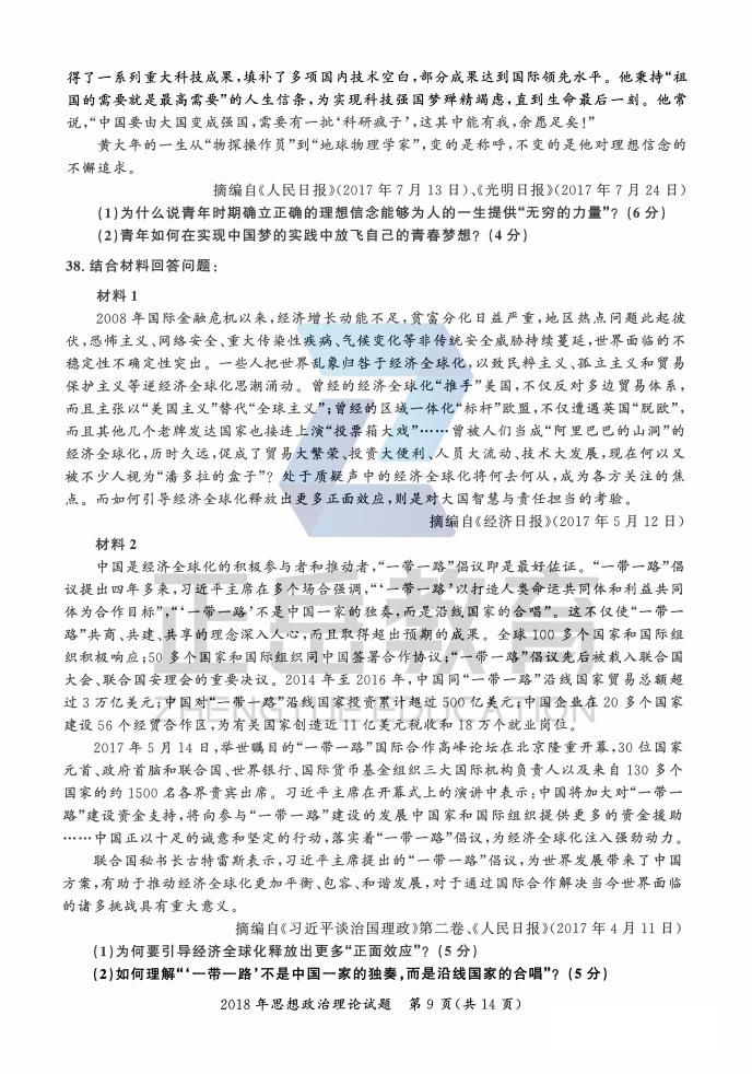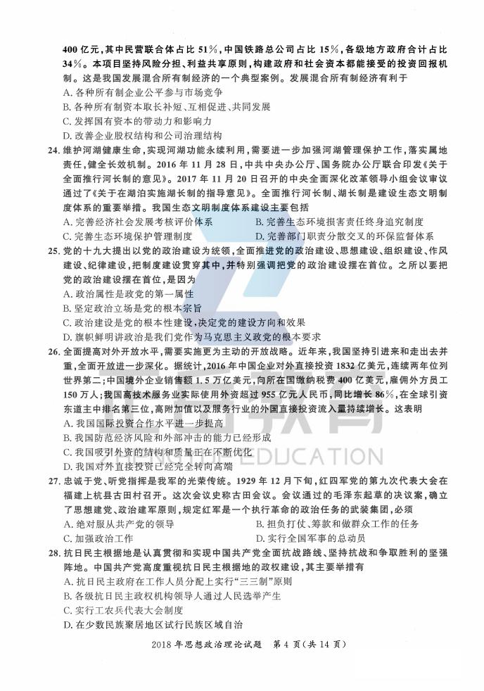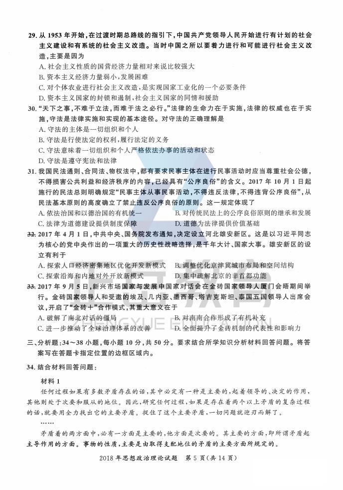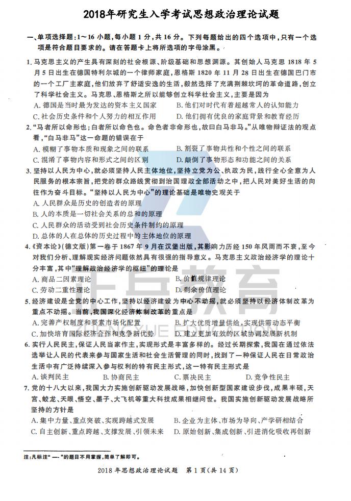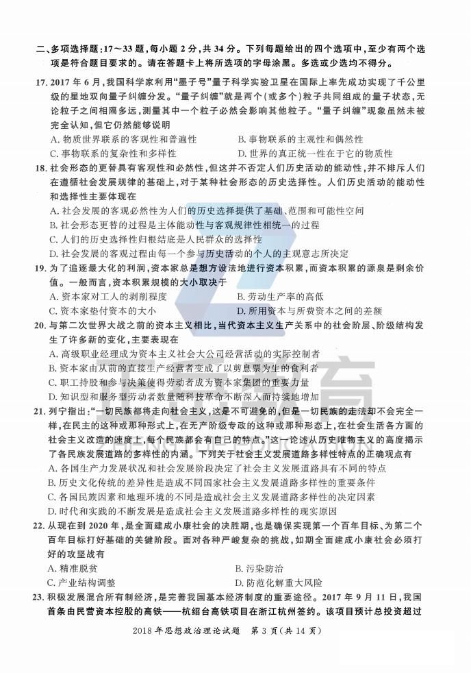 2018年考研政治真题